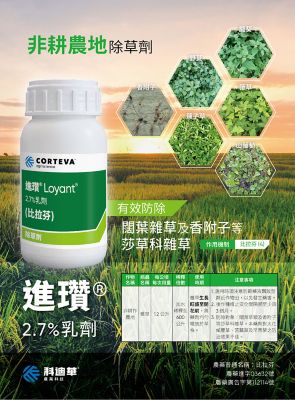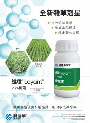 新上市除草劑進瓚,含有效成分比拉芬,為新型除草劑的科技成分,可選擇性防除雜草,且反應迅速。同時兼具雜草管理與環境保護,持續生產稻米作物,且迅速降解,減少環境負荷。